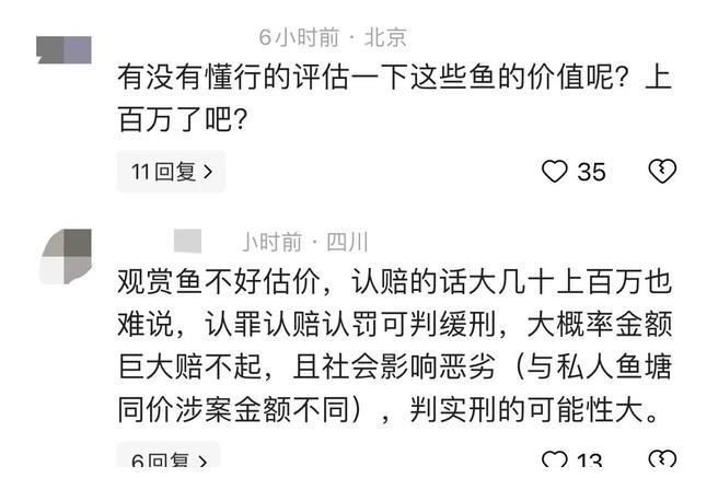 有网友根据视频和照片估算出损失,认为这些锦鲤的数量和体积,即便按市场价估算,损失也已经达到十万甚至更多。
