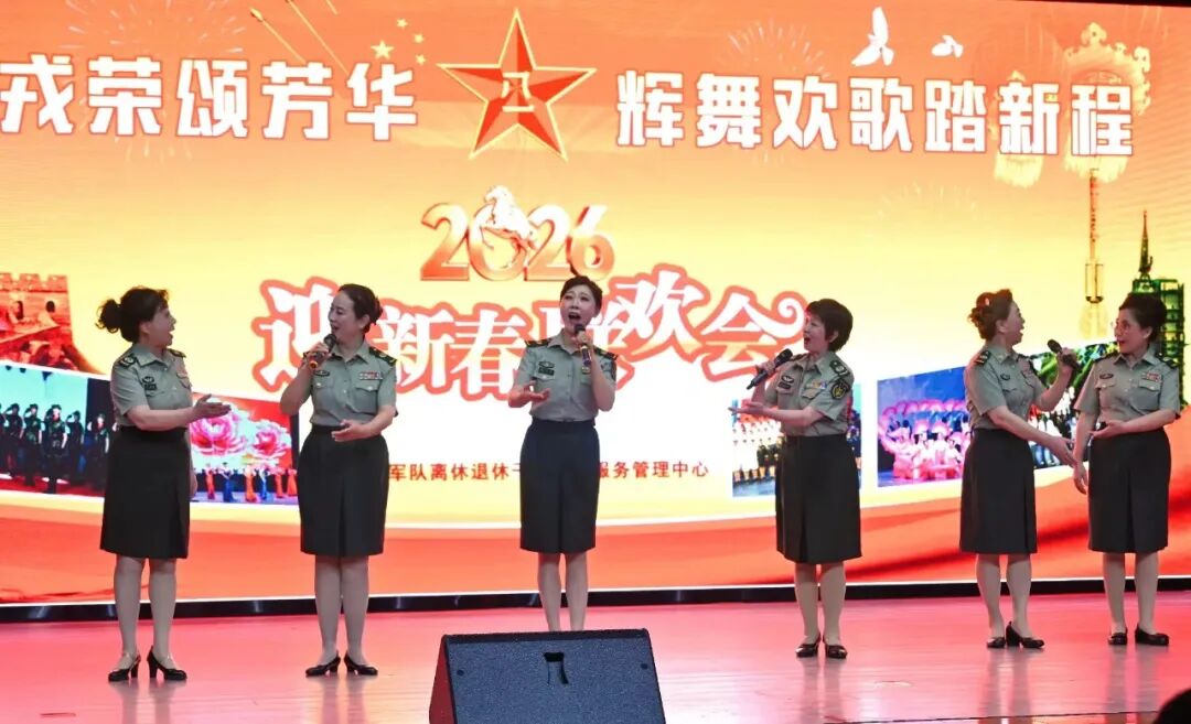 台上,戎马半生的军休干部演员们褪去戎装仍有锋芒,风采依旧、初心如磐;台下,朝夕相伴的老战友们围坐一堂,温情满满、暖意融融。马年新春的喜庆氛围与军民同心的深厚情谊在此交融,整场晚会以“颂芳华、迎新春”为核心主题,紧扣军休特色、彰显老兵本色,用歌舞寄深情、用笔墨颂忠诚,层次分明、亮点纷呈,每一个节目都承载着老兵们的家国情怀,每一段旋律都诉说着难忘的峥嵘岁月。