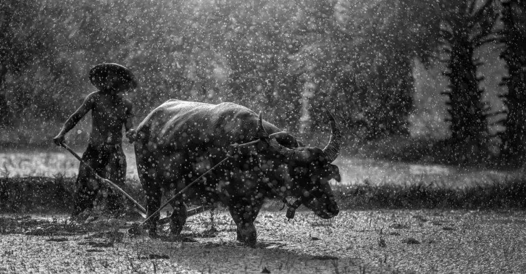 为了应对这个挑战,他决定在对面山底下开荒种地。然而,水牛似乎不愿意去耕地,它扭着头阻挡老李前进。