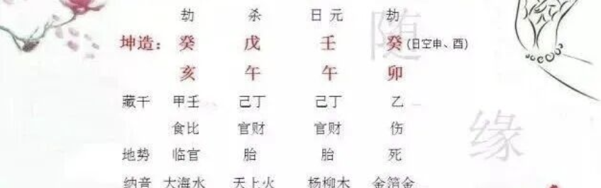 八字坤造:你生于癸亥年、戊午月、壬午日、癸卯时(日空申、酉);