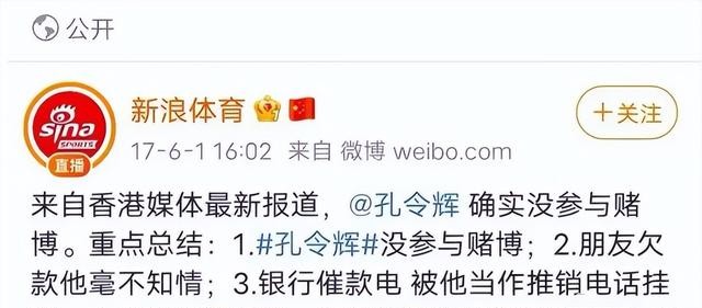 2017年,香港媒体其实进行了澄清,说明孔令辉并没有参加赌博,而且朋友的欠款,他也是毫不知情。