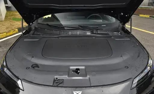 说完了静态体验,我们再来聊聊动态表现。深蓝L07提供纯电和增程两种动力模式,可以满足不同用户的需求。我试驾的是增程版车型,搭载了一台1.5L自然吸气发动机和一台后置电机,动力输出平顺而强劲。在城市道路行驶时,电动机提供了充足的动力,起步迅速,超车轻松。而在高速行驶时,增程器会介入工作,为车辆提供持续的动力输出,完全不用担心续航焦虑。值得一提的是,深蓝L07的底盘调校非常出色,兼顾了舒适性和操控性,即使在路况较差的路段行驶,也能提供不错的乘坐舒适性。