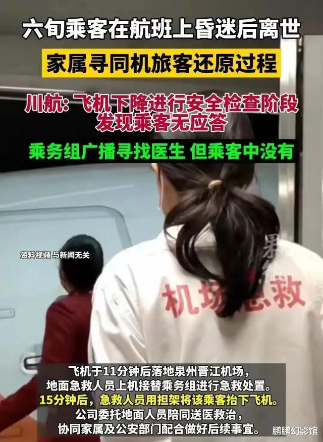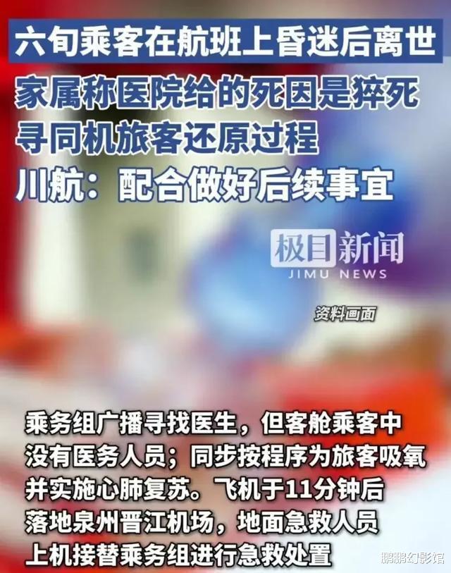 遗憾的是,老人未能救回,医务人员已竭尽全力,院方指出死因为猝死。川航公司称,将协同家属及公安,妥善处置后续事宜。