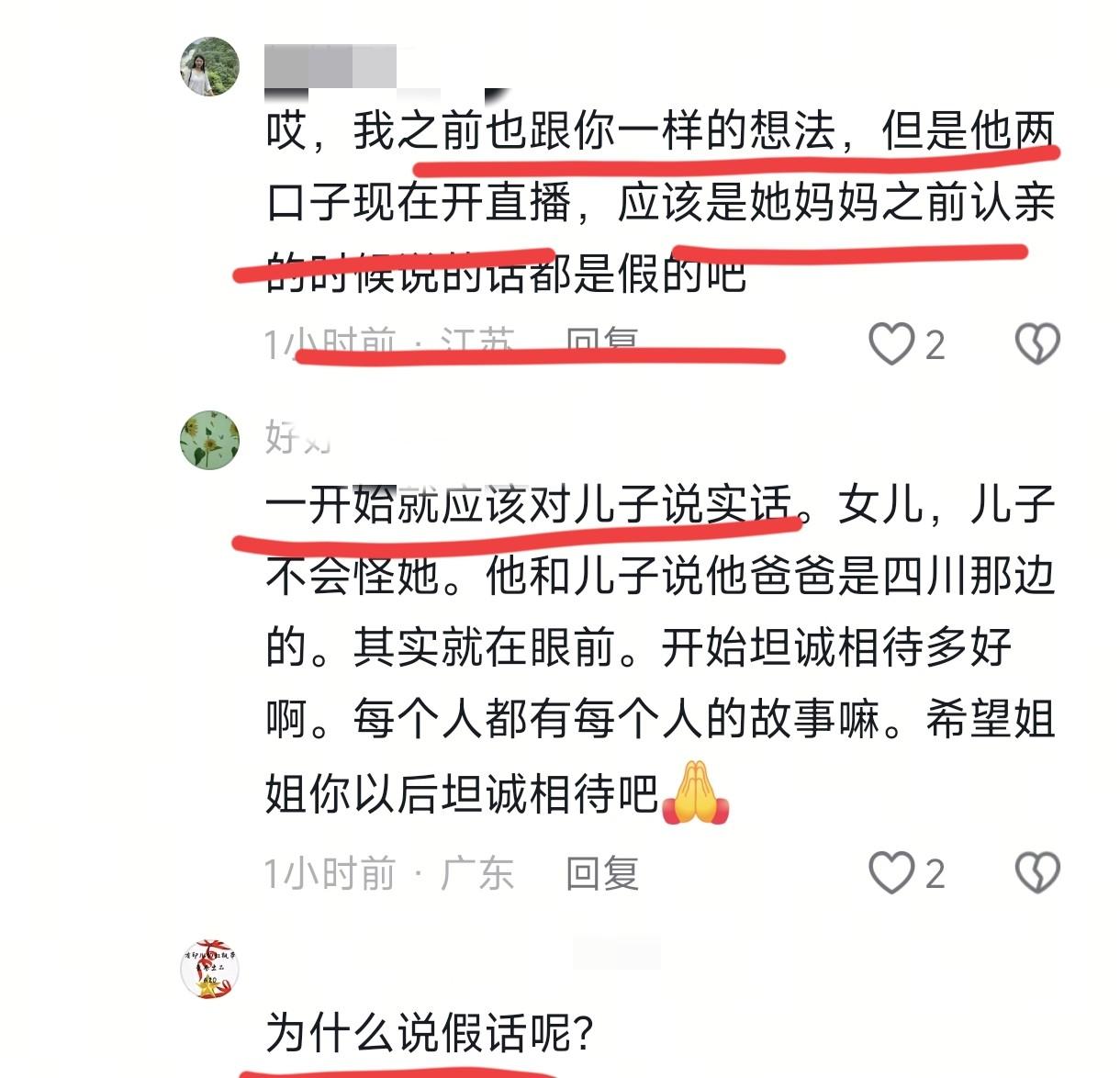 很多网友看到王晓举夫妇直播,便到他母亲账号下留言,想要事情真正的答案。