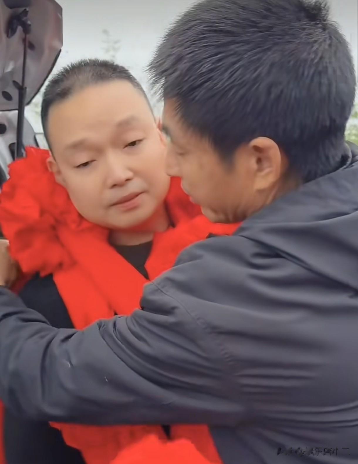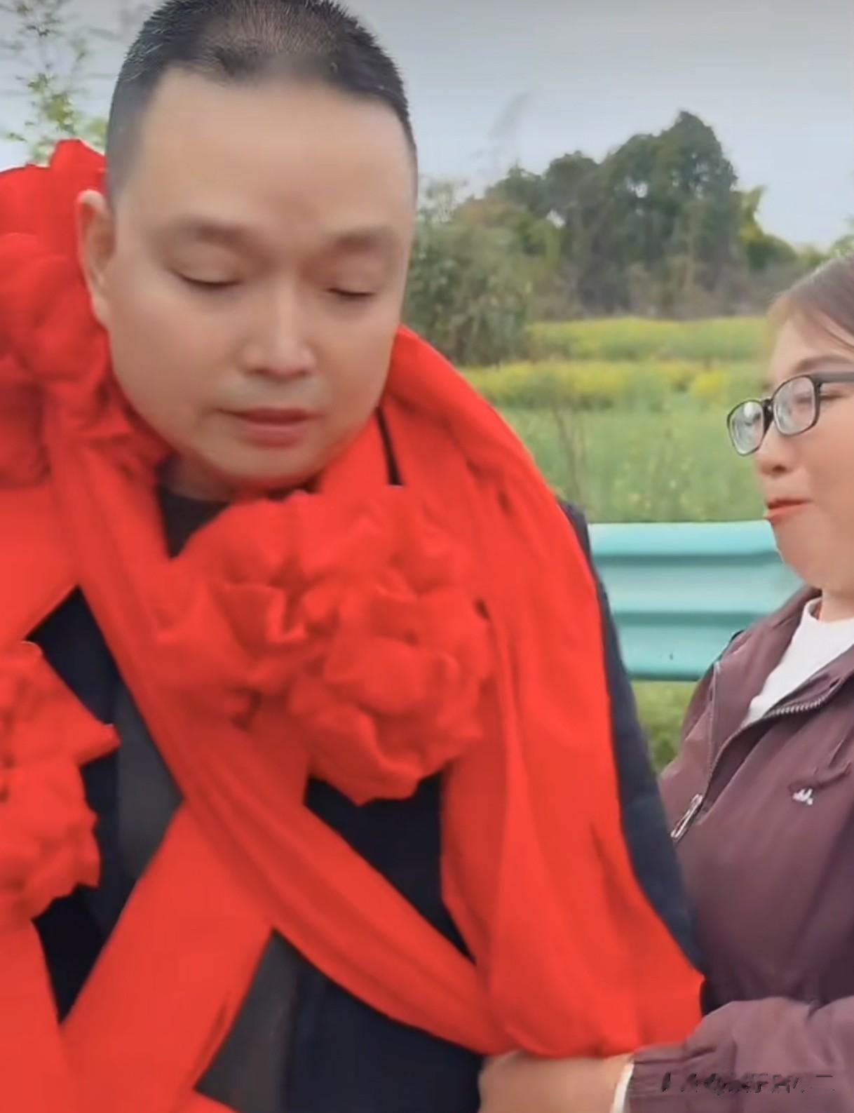 叔叔急忙过去安慰他,并从车的后备箱里拿出了早就准备好红色的大花戴在了王晓举脖子上,把他包的严严实实的,只露个脑袋,非常的喜庆。