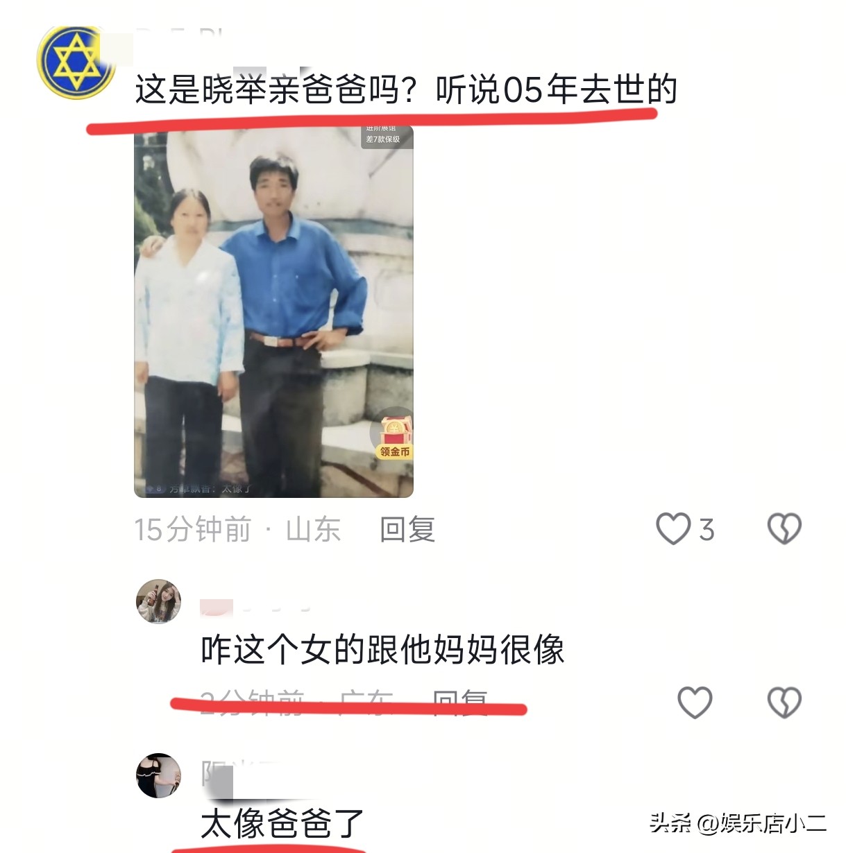 而在父亲的身边的女子,网友们觉得却更像是来看望王晓举的大姨,也似乎印证了网友的猜测。