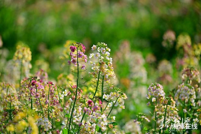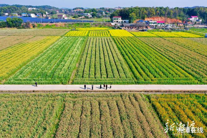 3月19日,春风和煦,阳光明媚,市农科所在雨湖区长城乡种植的彩色油菜花随风涌动,从高空俯瞰,七彩的油菜花与乡村民居构成了一幅田园画卷。市民游客漫步于花海中,尽情享受着春日美景。