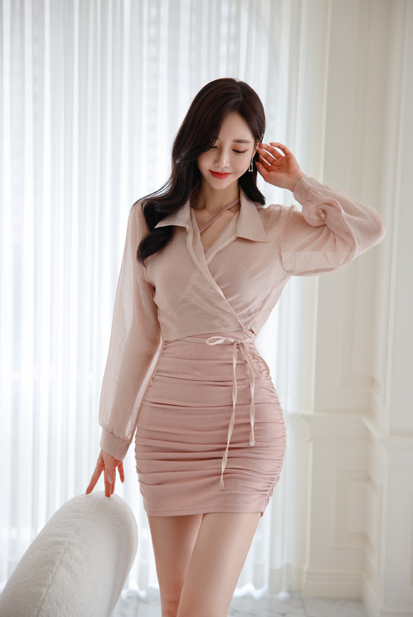 裙子的设计融合了秘书裙的干练与浪漫元素。修身的剪裁恰到好处地勾勒出她的身材曲线,展现出女性的优雅与知性。