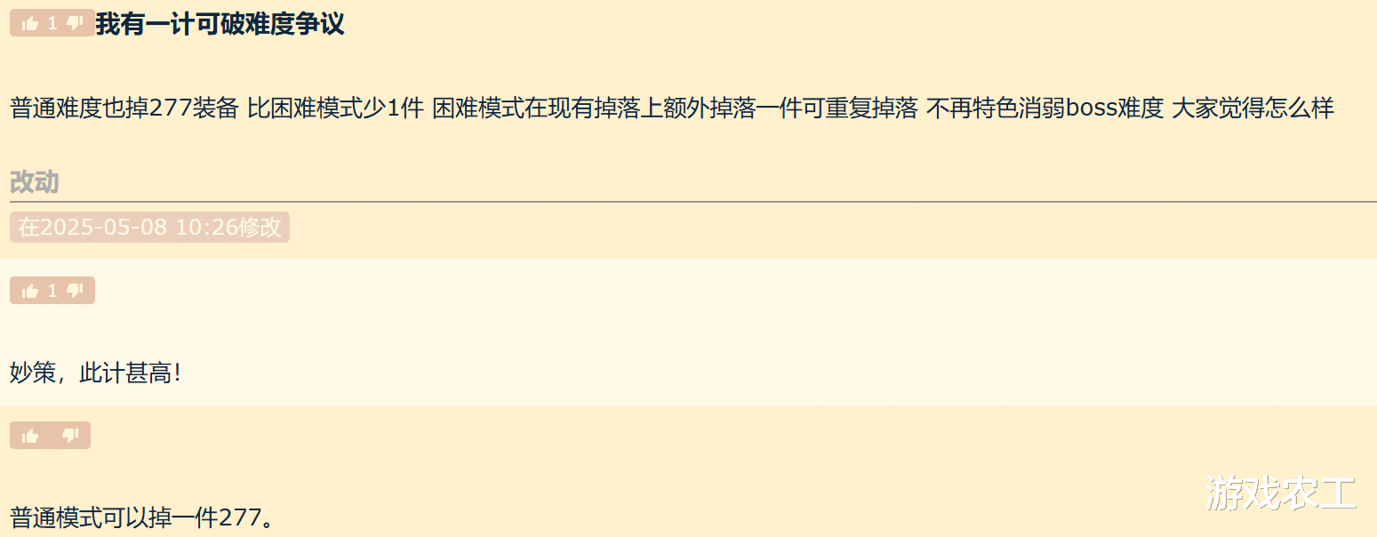 该帖主的方法就是难度分流的同时装备也进行分流,为什么很多玩家明知打不过英雄模式也要打呢?核心原因在于目前的普通本和英雄本之间的装备差距过大,如果不打英雄本的话,那么就无缘该阶段的BIS装,但是打的话又难以打过所以就要求官方进行削弱难度,所以该帖主的想法就是为什么不将BIS装备放到普通难度呢?