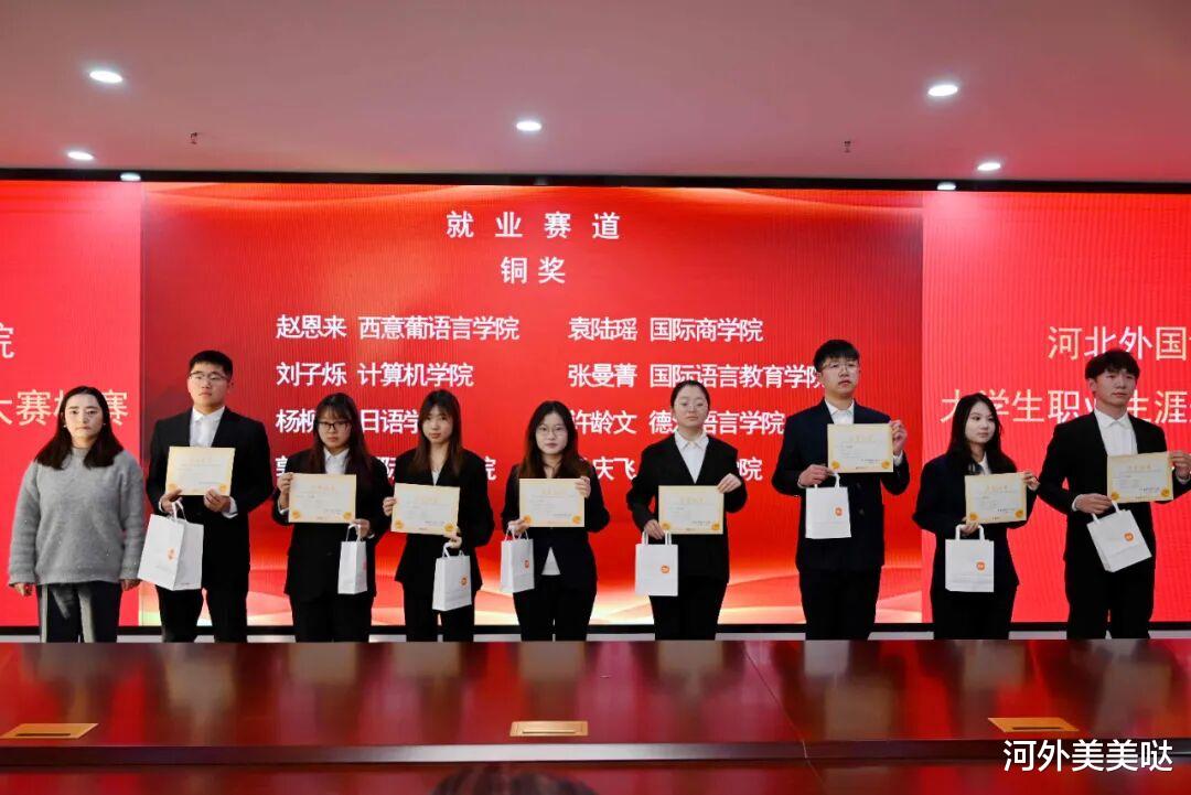 大赛自10月启动,获得河北外国语学院全校师生积极响应,20714名学生报名。经层层选拔,40名选手进入校决赛,最终成长赛道、就业赛道共产生金奖6名、银奖11名、铜奖21名,优秀指导教师6名,优秀组织单位6个。学校副董事长、执行校长习伟教授,党委委员、副校长陈乐音教授,河北省创新教育学会学生发展指导分会常务副理事长、河北省青年民营企业家商会书记、知德立行教育集团董事长、国家认证生涯规划师赵恒智先生,教务处、教学质量监控办公室、学生创业就业管理处领导莅临比赛现场和颁奖现场。