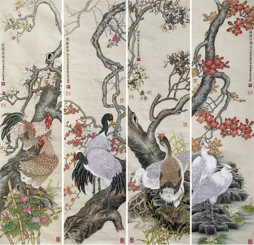 《寿带吉祥》四条屏 138×33cm×4 2023年