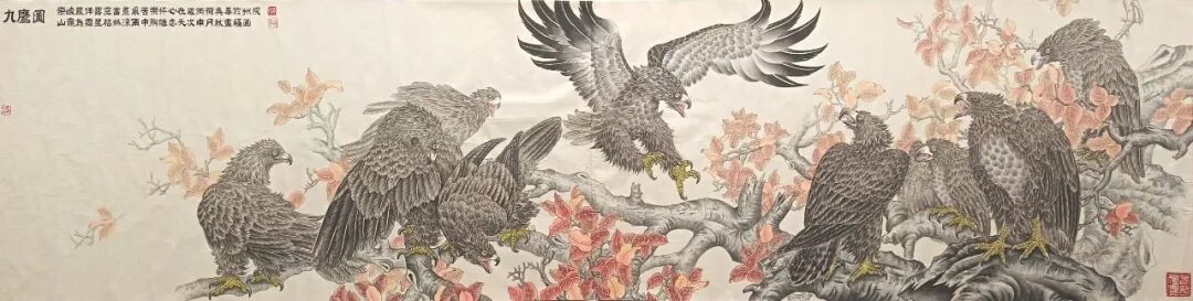 《九鹰图》272×68cm 2016年