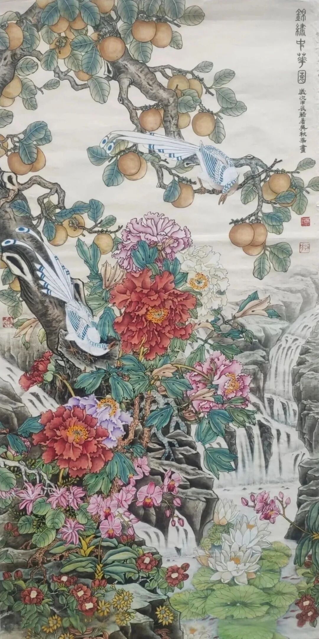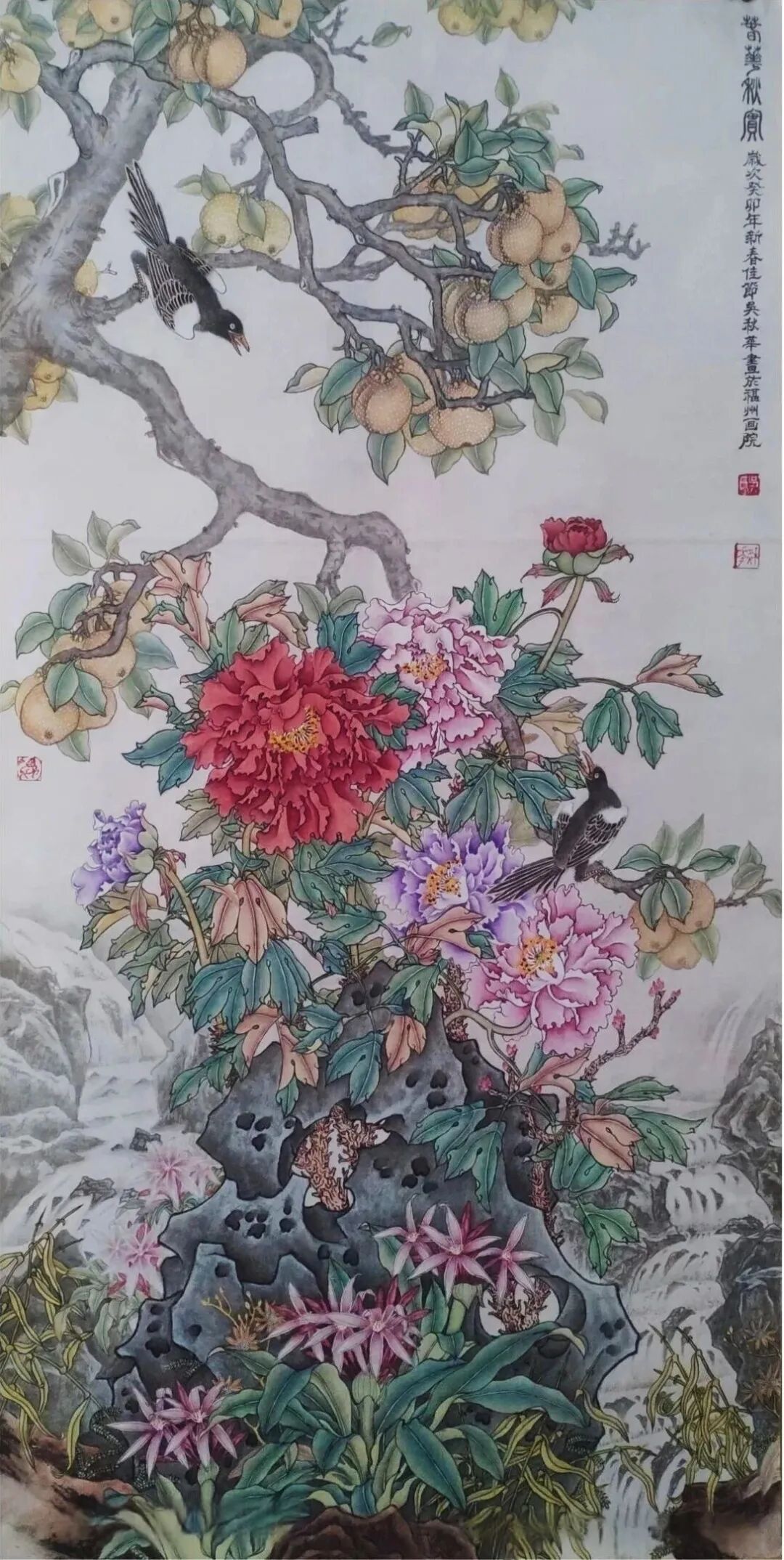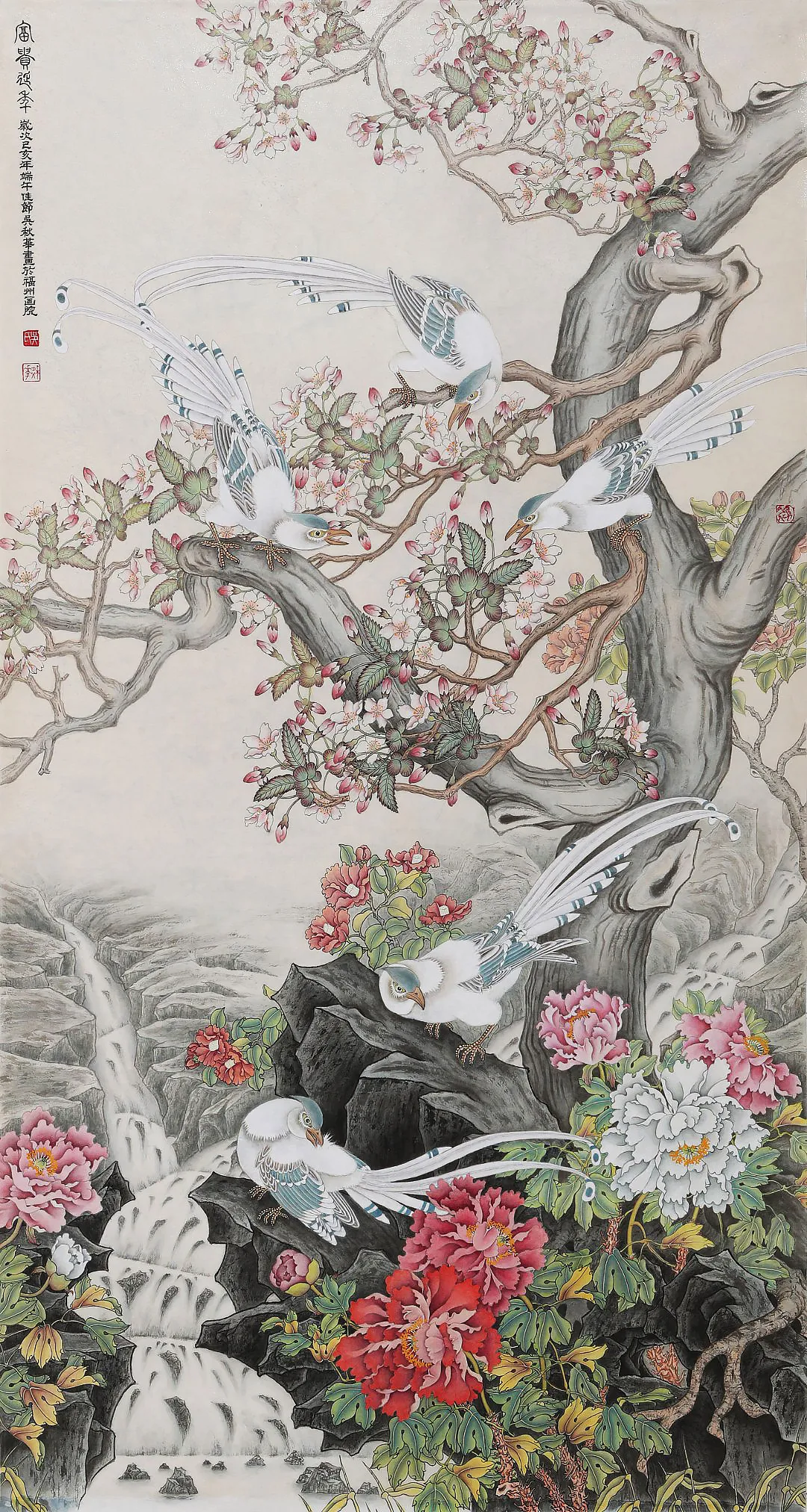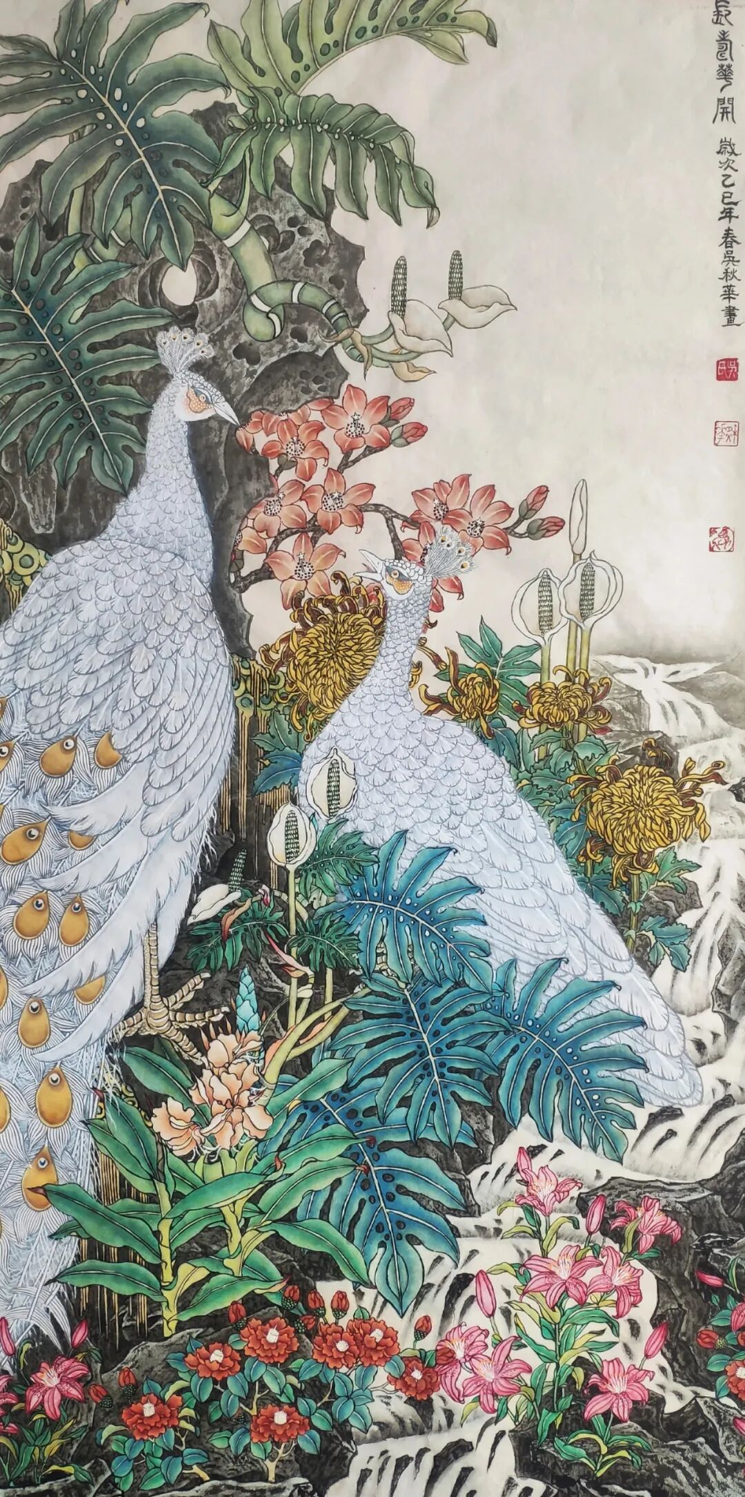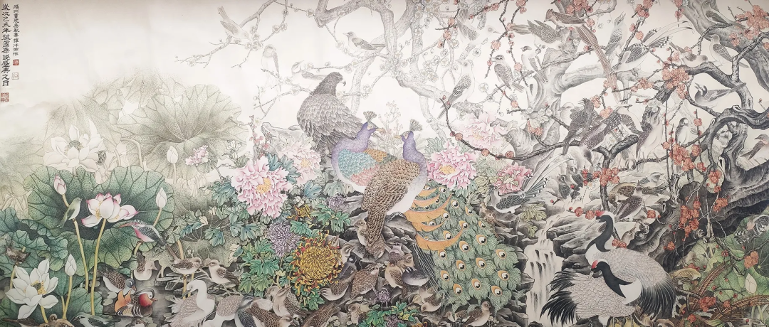 《四季皆春 百鸟贺岁》240×120cm 2015年