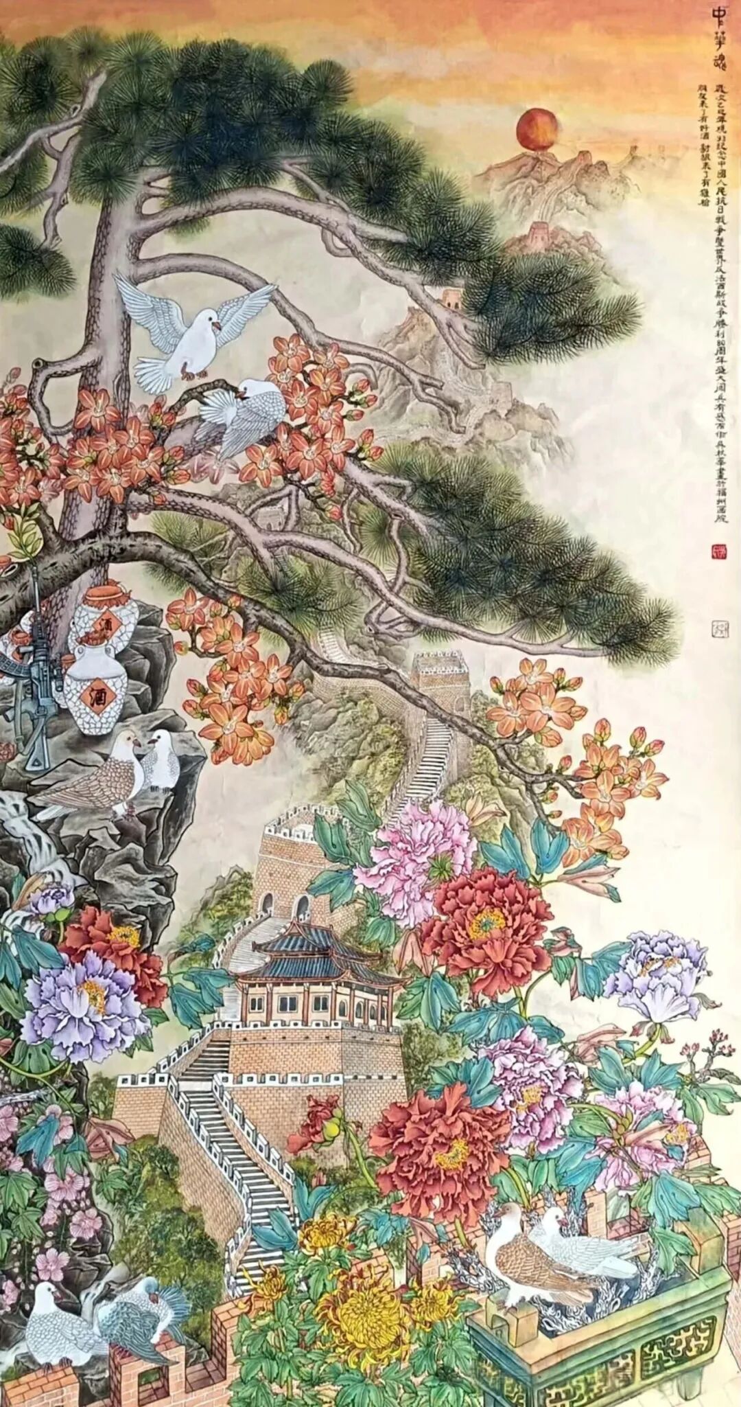 《中华魂》171×93cm 2025年国画艺术也一样,不要老跟随在别人的背后学,要有自信心,要正确对待别人的意见和建议,千万不要盲目听从别人为你所做的所谓安排,艺术画风因人而异,每个人的审美、情趣、爱好、修养都不同,盲目跟风往往会磨灭你的天赋,使你误入歧途,造成得不偿失的后果。所以我认为:对待别人的意见不应该盲目服从,人云亦云。听到意见就改,表面上是谦虚,实际上叫“优柔寡断”,没有自信心,著名作家冯骥才说过:“不承认别人不等于不尊重别人,强调自己不等于目中无人。”
