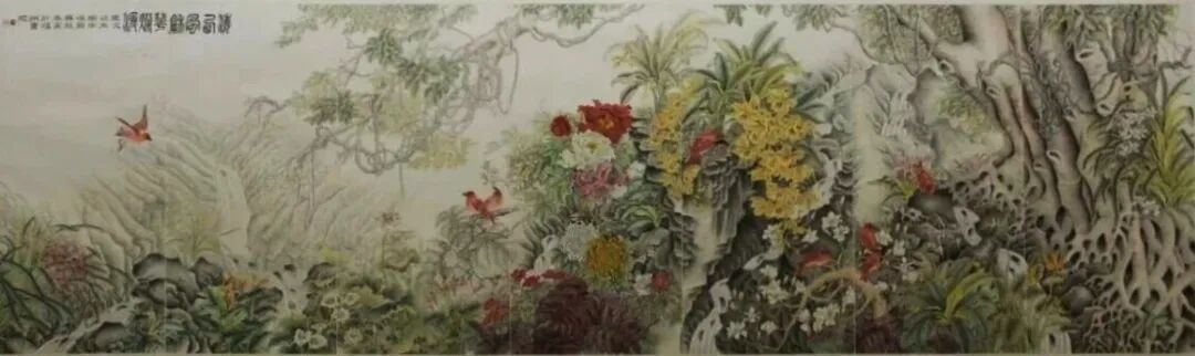 《长寿花开》136×68cm2024年综上所述,国画艺术需要个性,而培养个性是每个想成功的画家的必经之路,就是要通过努力创作出适应新的意境所需要的新技法,让自己的作品脱颖而出,形成自己的风格树起自己的个性,这就要求我们要创造新技法,不但要动脑筋,而且要有胆识,要有不断探索的精神,要坚韧不拔地坚持下去,失败也不要紧,这是正常现象,只要自己有明确的追求目标,持之以恒,就一定能创造出自己的新技法、新风格,形成自己的个性,增强作品的生命力!注:本文已发表在中国美术出版总社主办/国家艺术类核心期刊《美术之友》2008年第四期,同时发表工笔画作品《紫荆鸣春图》