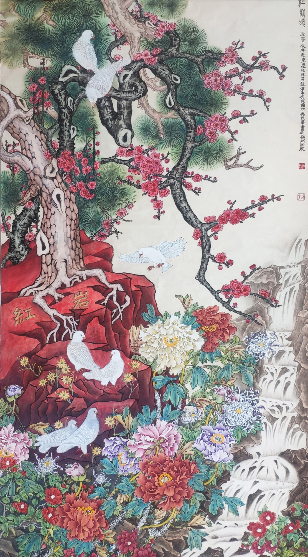 《红岩颂》171×93cm 2024年而这个画展还有个与众不同的特点,那就是“亮”的时间长,“亮”的频率也高,不像参观有些人的作品,缺乏个性,不耐看,有一“亮”即逝的感觉。究其原因,那就是江先生的作品.是一种以崭新的风格样式,在继承传统水墨的基础上经西画写实手法改造而形成,使传统中国画无论在造型,表现手法,还是在思想内涵上,都发生质的变化,因而有其很强的个性,不但作品清新、典雅、细腻,又有新古典的风范,而且技艺精湛,用古人所没有涉及到的西洋画写实的方法应用到中国画写神的意境之上,令人有赏心悦目之感。