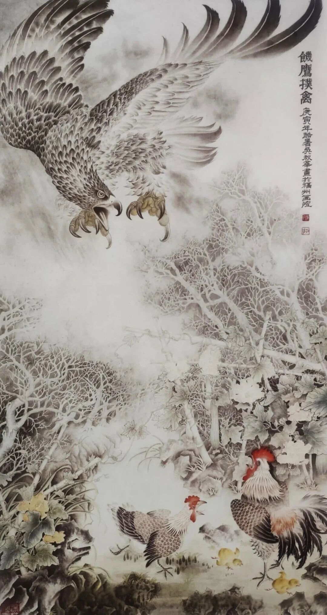《饿鹰扑禽》171×93cm 2010年