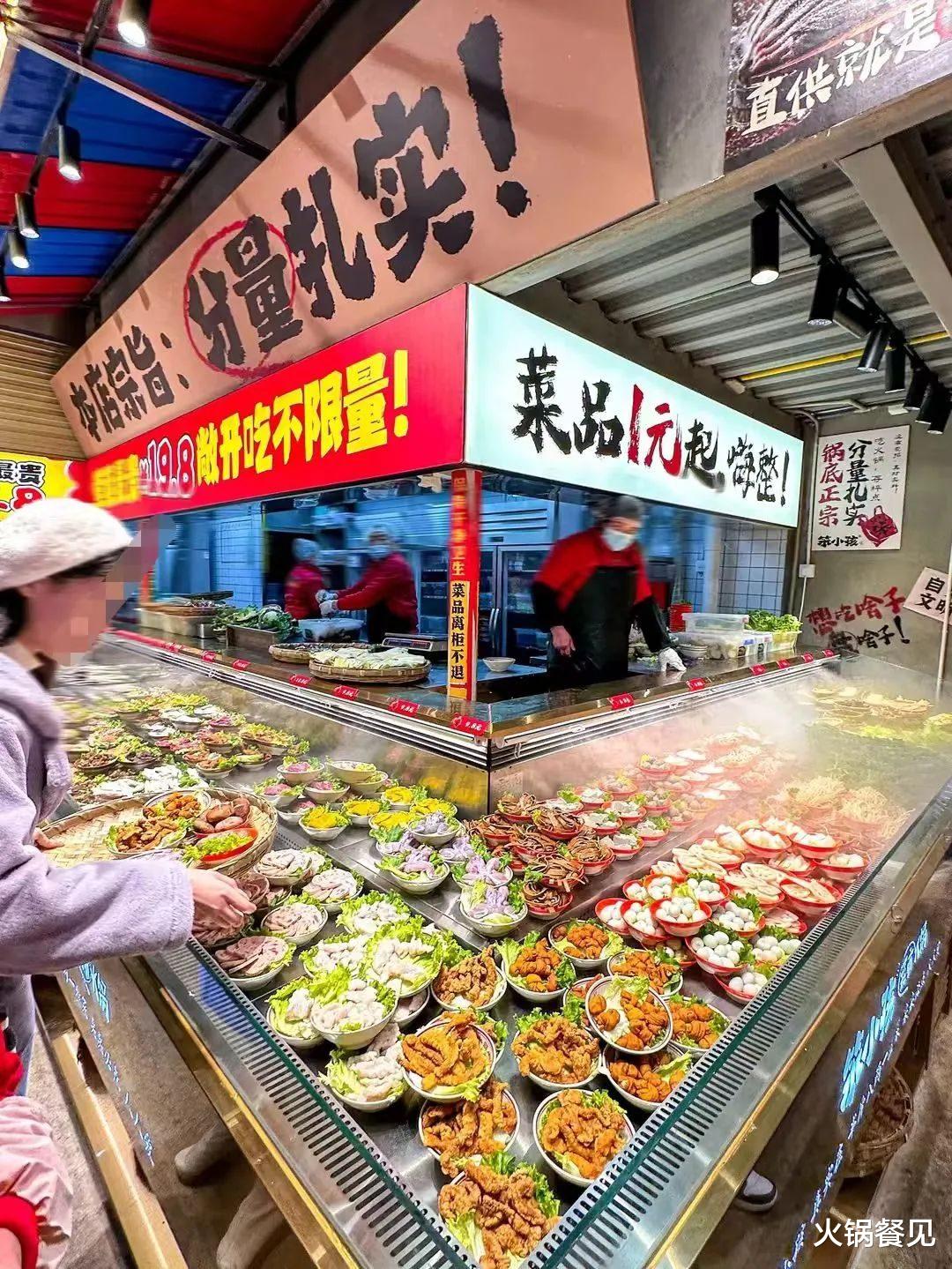 比如,透明档口装盘的鲜货鸭肠、晚7点准时到店现杀牛肉、琳琅满目的菜品货柜,构建出"看得见的鲜度体系"。