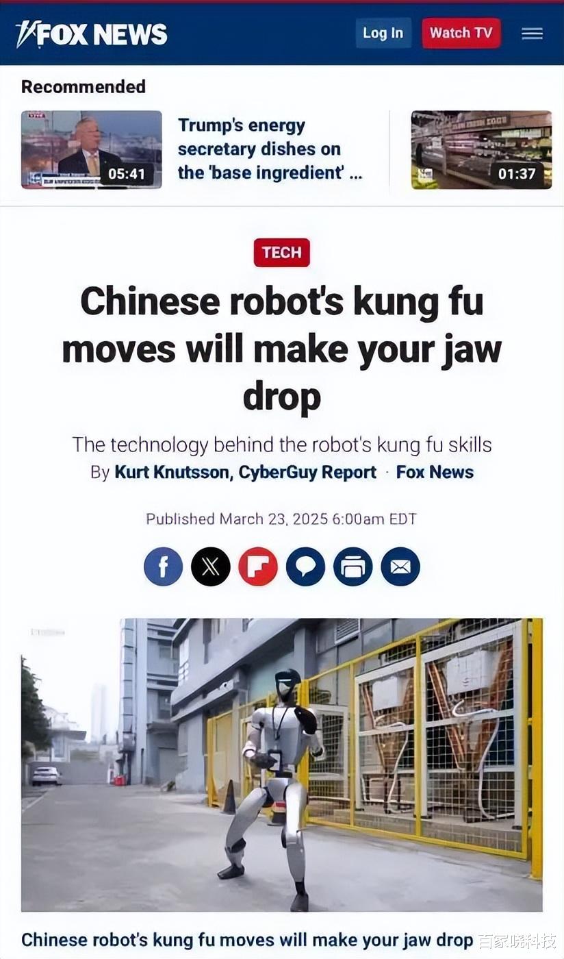 美国福克斯新闻网3月23日的报道标题格外醒目:"中国机器人的功夫动作让人惊掉下巴"。当宇树科技G1机器人行云流水般使出"出拳-扭身-回旋踢"三连招时,连见多识广的美媒评论员都化身武侠片解说员:"这不是简单的机器人跳操,而是从舞林高手直接晋级功夫大师!"