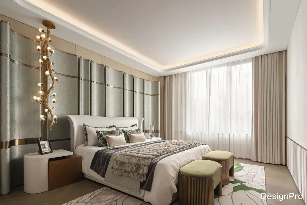 设计师运用精致且华丽的装饰元素,巧妙地展现了城市新贵阶层的文化底蕴和高雅品味。通过后现代主义的设计理念,他们深入思考并创新演绎出一个既舒适又理想的生活艺术空间。