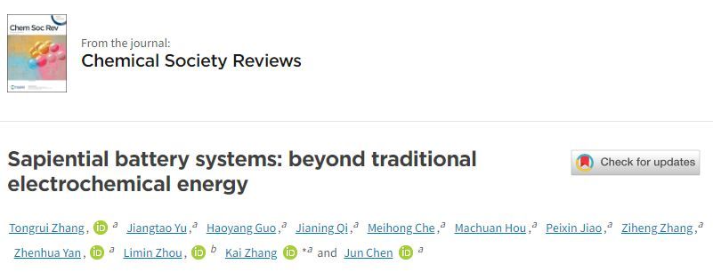 基于此,2024年11月11日,南开大学陈军院士/张凯研究员在国际期刊Chemical Society Reviews发表题为《Sapiential battery systems: beyond traditional electrochemical energy》的研究论文。