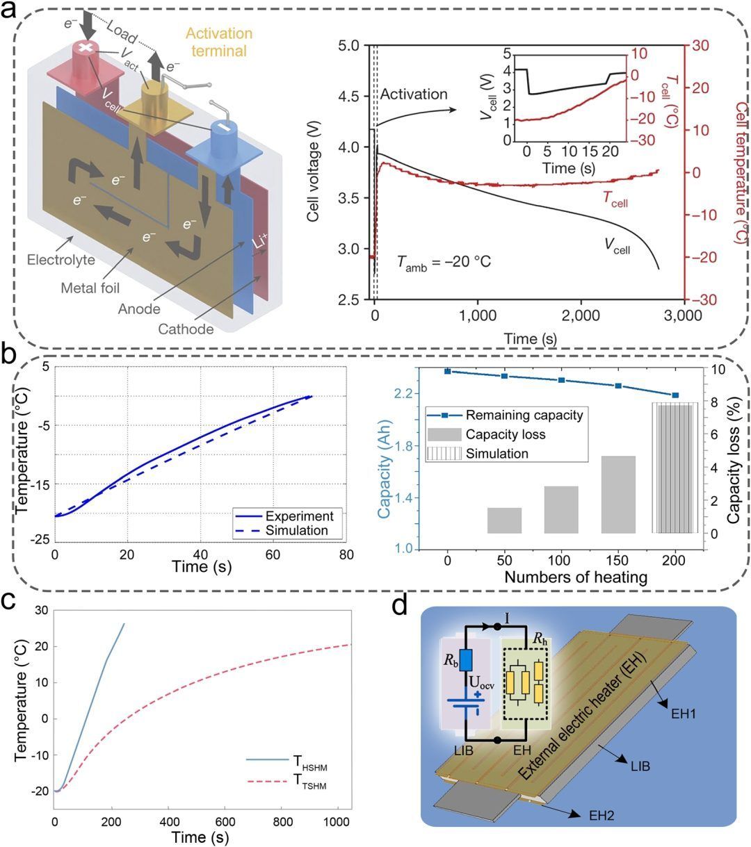 图3:自加热电池的温度变化和优化加热策略