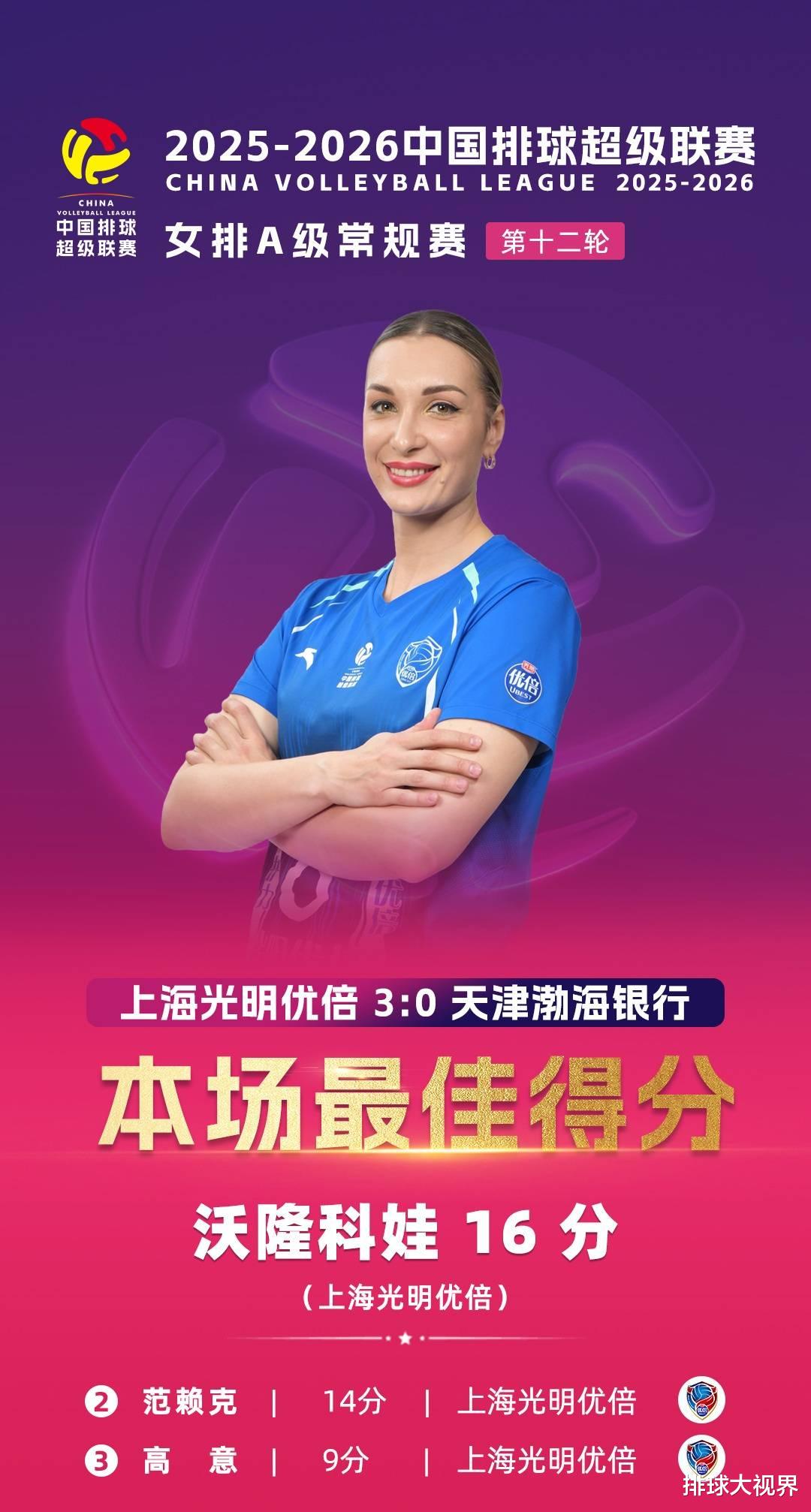 In a key match of the 12th round of the Chinese Volleyball Super League (Class A), Shanghai Women's Volleyball Team defeated Tianjin 3-0 at home!