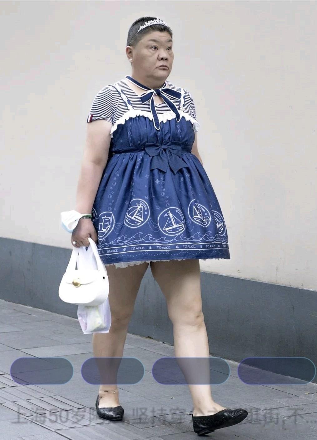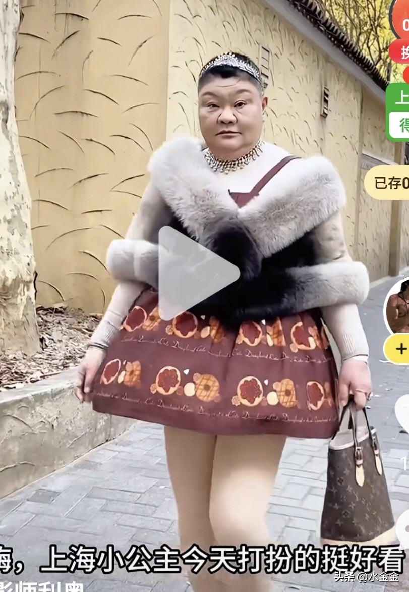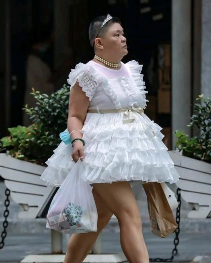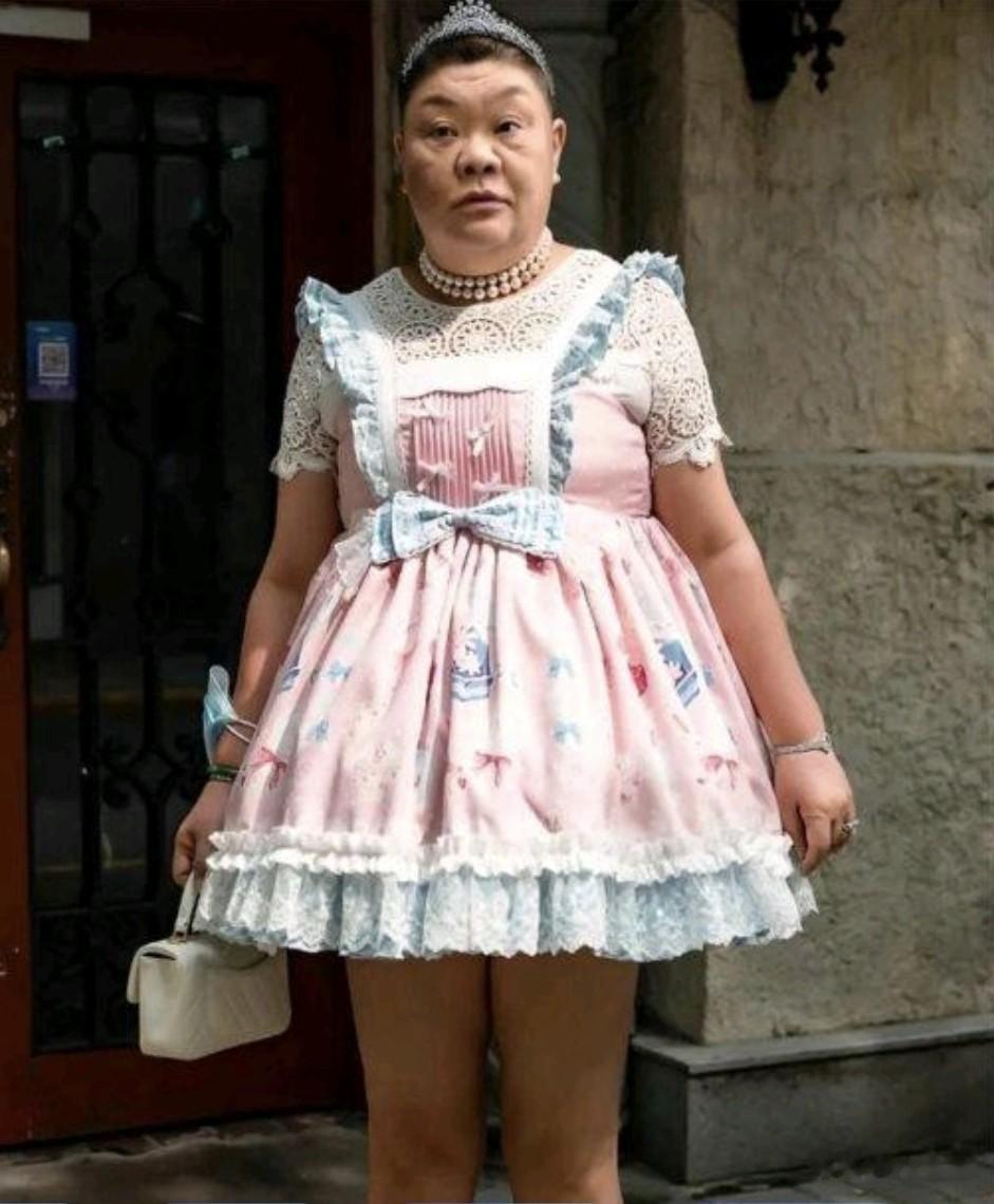 这不今早又看到上海的一个老奶奶,她穿着一身小女孩款式公主裙,也跑出来了。