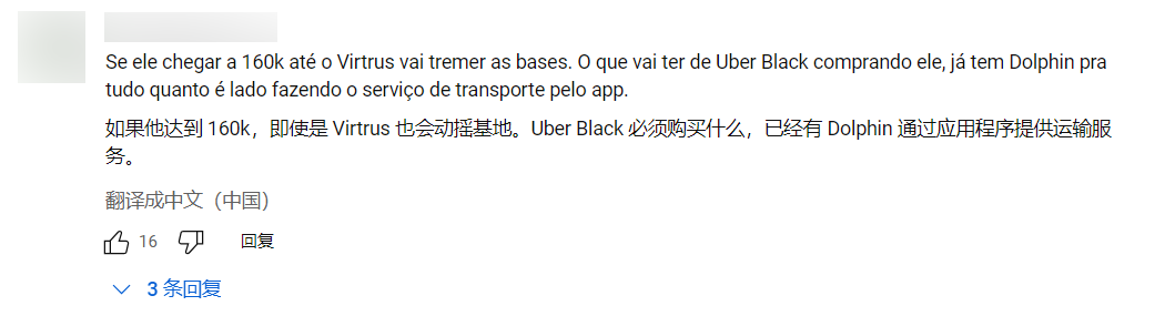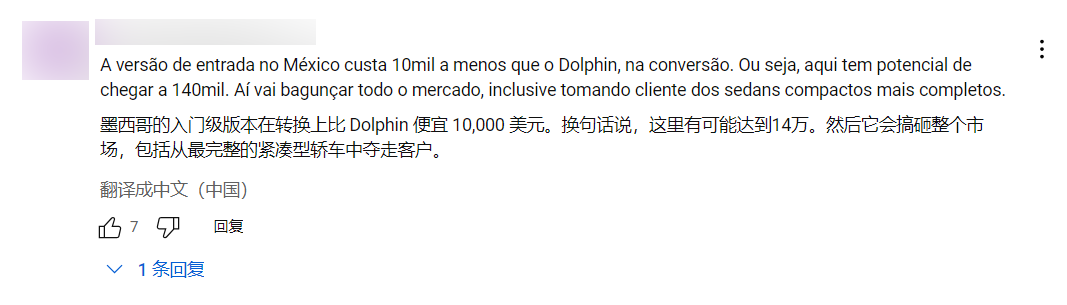 “不开玩笑,要是这车真的只卖16万雷亚尔不到,那么大众的朗逸XR(Virtus)肯定得瑟瑟发抖了。很多跑豪华专车(Uber Black)的网约车司机都会买爆它。你们是不知道‘海豚’现在在巴西有多火啊,大街小巷到处都是开着它拉单的。”