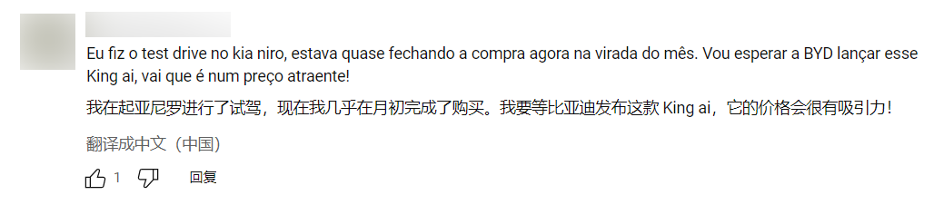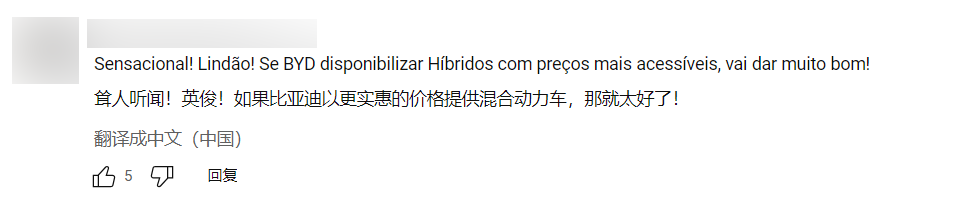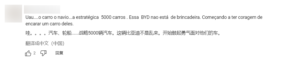 我在这里给大家复述的这些,都是从YouTube上一个知名巴西汽车频道(Motor1 Brasil)的评论区里摘录下来的葡萄牙语评论。这个巴西汽车频道的主持人法比奥·特里纳德(Fabio Trinade)最近往YouTube上上传了一段视频,讲的是他在巴西的苏阿佩港迎接抵达巴西的首批比亚迪2024款秦PLUS DM-i轿车的事情经过。而且,该频道还给这段视频起了个相当有意思的葡语标题——