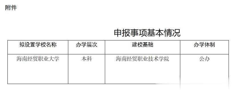 12月12日,海南省教育厅发布《关于2025年申报设置本科层次职业学校的公示》。公示内容显示,拟以海南经贸职业技术学院为基础设置海南经贸职业大学,办学体制为公办。