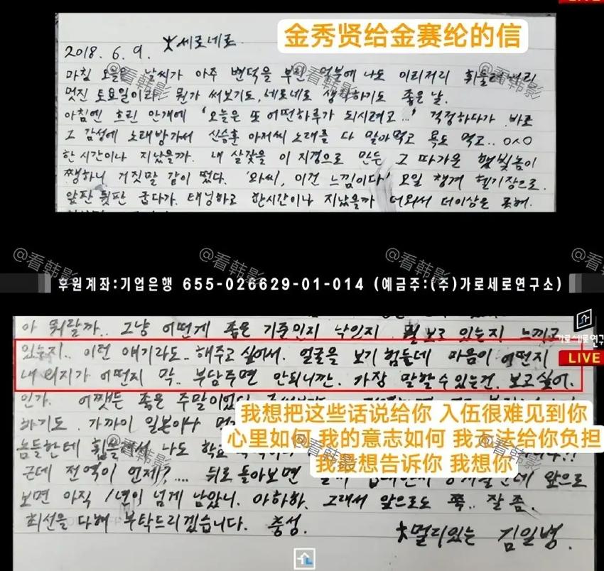 2024 年 3 月 19 日,金赛纶发给金秀贤的短信曝光。短信里,金赛纶哭诉自己收到被起诉还钱的内容证明书,说自己正努力准备复出,想慢慢偿还公司垫付的赔偿金,“现在让我一下子拿出 7 亿,我真的做不到。求你给我条活路…… 拜托了,给我点时间。” 此前,金赛纶家属在《横竖研究所》直播中提到,金赛纶联系金秀贤后,对方居然把她电话给了记者,金赛纶接到记者来电询问是不是本人时,当场情绪崩溃,这心里得有多绝望。
