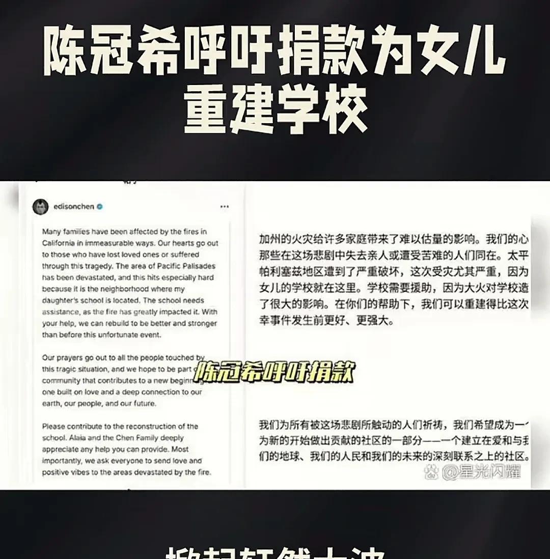 陈冠希,这个名字曾经在娱乐圈掀起过不小的波澜。如今,他又一次成为了舆论的焦点,只不过这次不是因为绯闻,而是因为一场募捐。美国加州的大火无情地吞噬了他的豪宅,而他却选择在社交媒体上向国内粉丝求助,理由是要为女儿的学校重建筹款。这个举动让不少网友感到愤怒和不解:一个身价过亿的富豪,怎么好意思向普通人伸手?