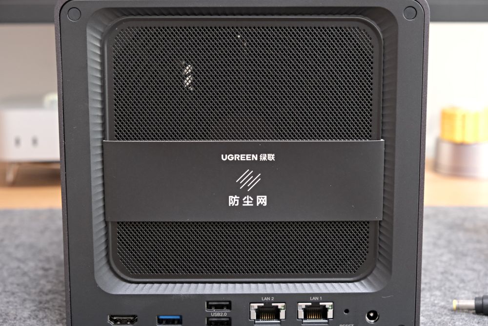 而且绿联还贴心的配备了防尘网,可以直接磁吸在机器的背部,能够缓解灰尘进入机箱内部,这也是自己第一次在NAS产品中看到这种有用的配件,说明绿联真正的把产品设计做在细节之处。