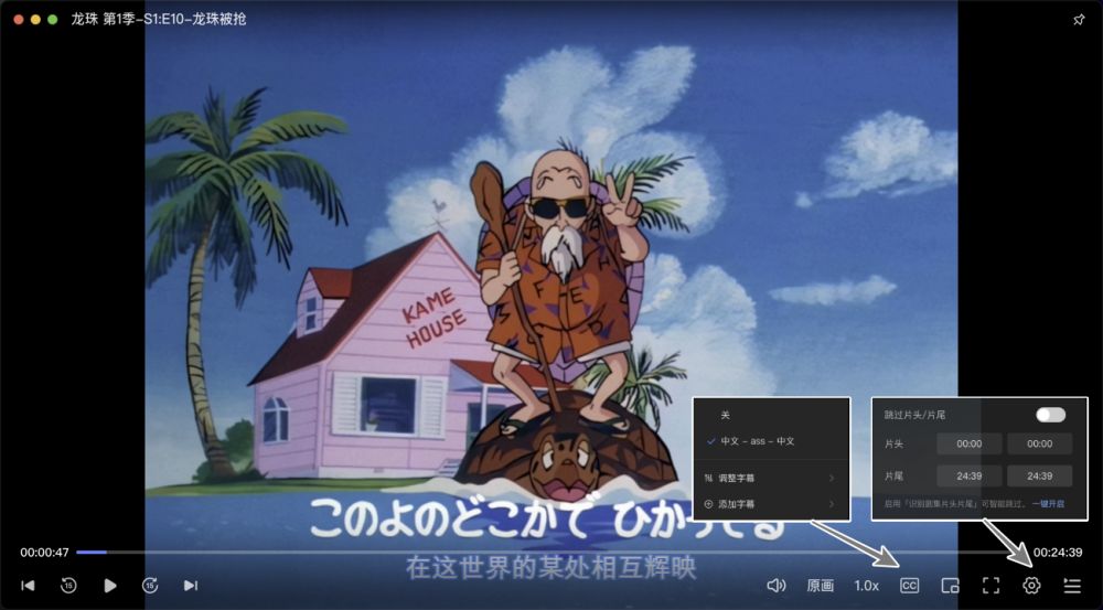 绿联 DXP4800 Plus 的播放器还支持在线字幕下载和智能识别片头片尾,可以方便家人看一些外语系视频,跳过片头片尾也是节省时间的实用功能。