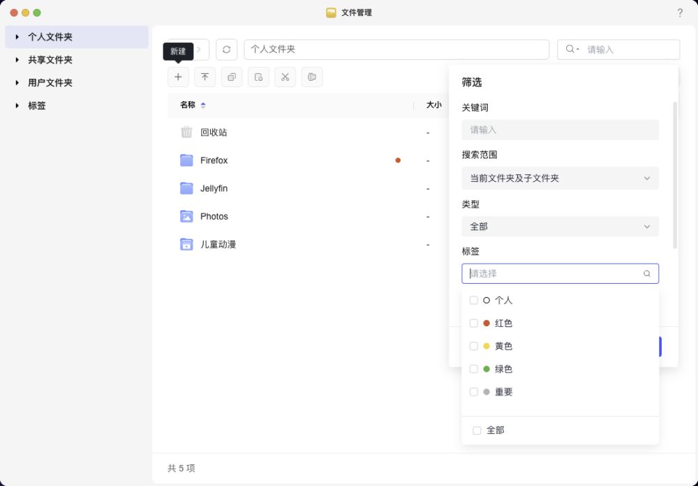 除此之外,还有一项方便管理文件的功能就是“设置标签”,可以一目了然的看到文件的标签,还可以根据标签进行查询。