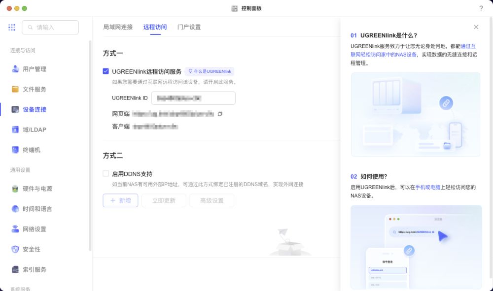 远程访问还可以使用UGREENlink和DDNS方式进行互联网访问,无论身处何地,都可以轻松访问到家里的NAS,个人更推荐UGREENlink方式。