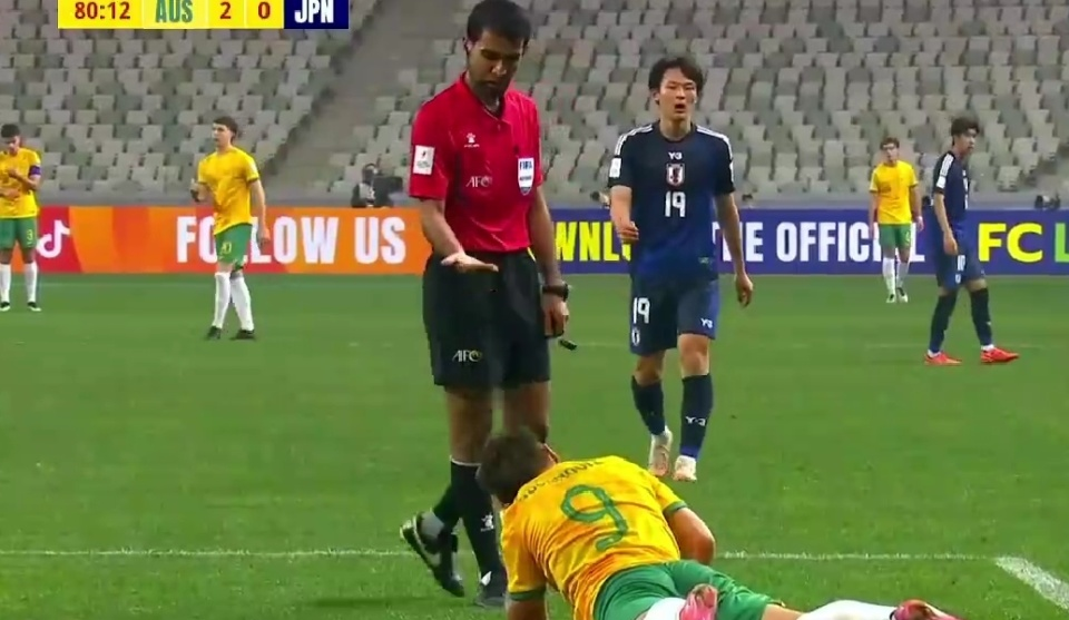 下半场刚开始3分钟,澳大利亚队通过一次快速反击打入一球。这个进球来自队友下底的横向低平传中,前锋穆萨·杜尔门前推射得手。日本队被迫全线进攻,但未能有效突破澳大利亚的防线。