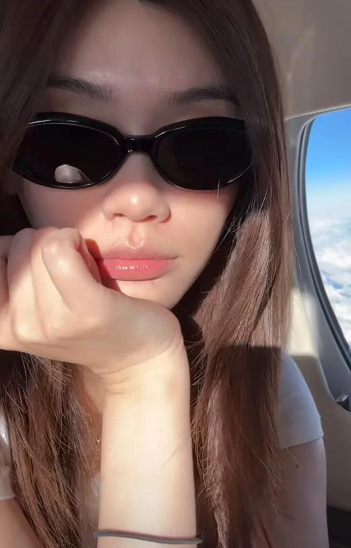 奚梦瑶在飞机上晒了自己的自拍照,她戴着墨镜,阳光洒在她的脸上,她的身后是窗外的蓝天白云,奚梦瑶把生活过成了诗意,她没有什么可忧虑的,她才是人生赢家。