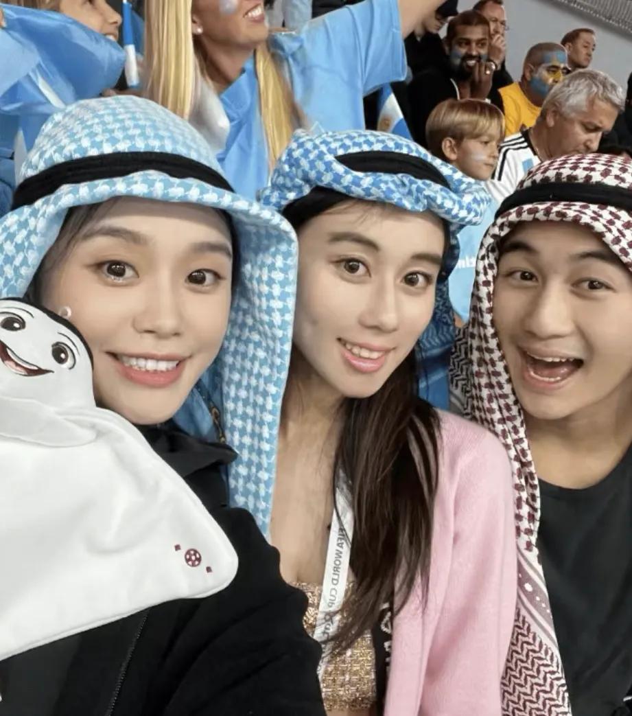 奚梦瑶穿着麂皮羊毛夹克,她搭配着白色裤子,何超欣泽穿着白色外套搭配牛仔裤,她俩打扮的都很青春靓丽。奚梦瑶和何超欣越长越像,她俩站一起就像亲姐俩。