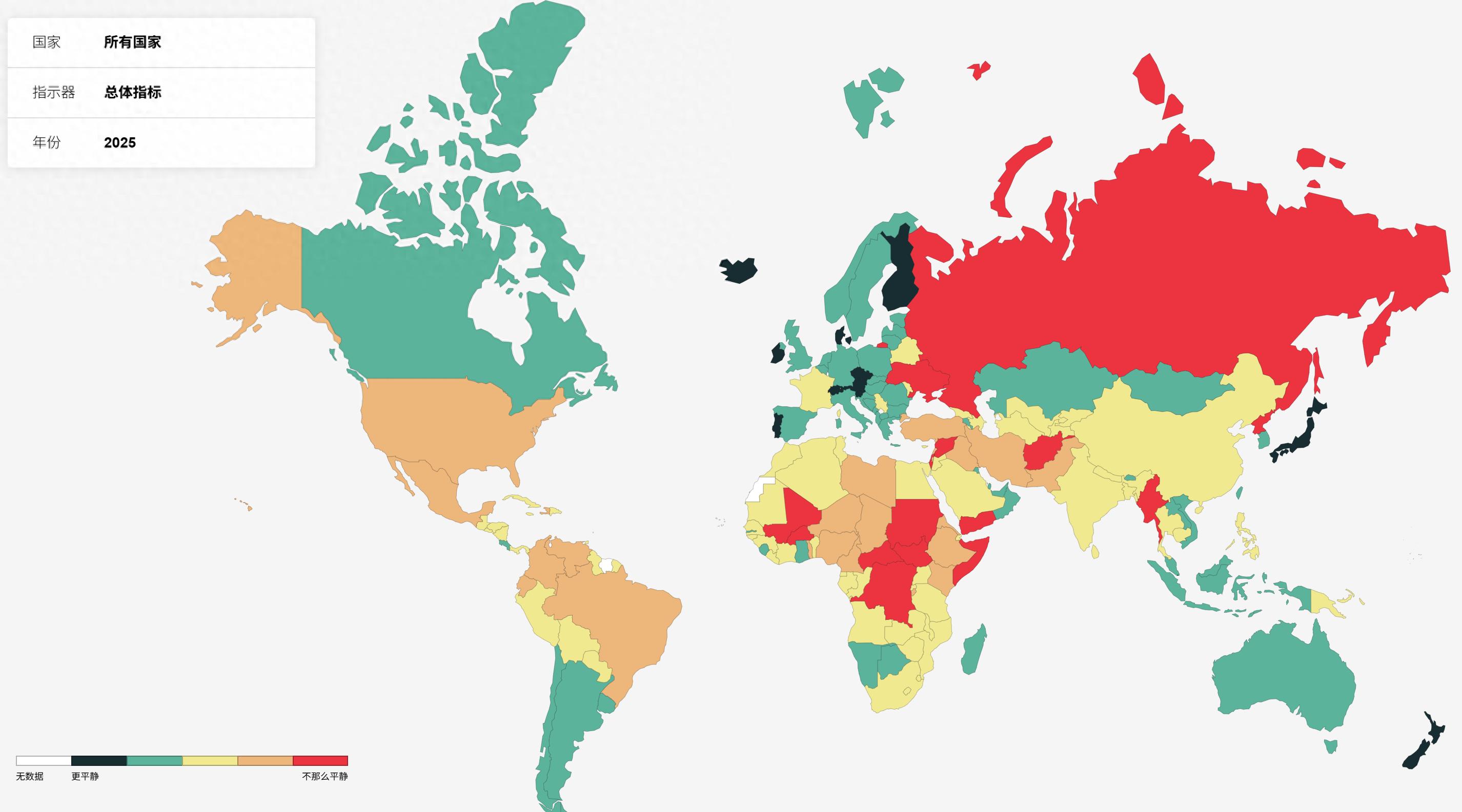 根据“全球和平指数”网站数据显示,全球和平程度在经历了一个高峰后,自2014年起便转为逐年恶化,地区冲突与社会动荡成为影响国际安全的主要因素。