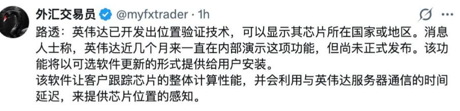 芯片一旦装了定位功能,接入网络之后,一切数据路径、计算行为、部署环境都会有被外部监测的风险。中方之所以立马出招,不是因为担心芯片质量,而是我们不想做“被监控的客户”。