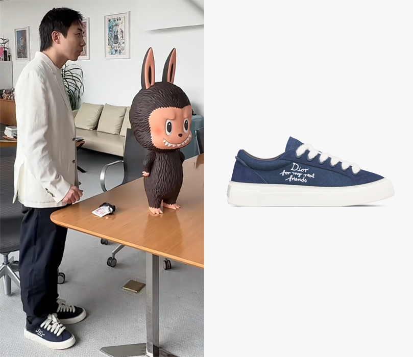 王宁的大牌衣橱中,DIOR拔得头筹。这件海军蓝双排扣单西他穿过很多次,戗驳领饰以可拆卸logo徽章,可拆卸纽扣饰带,收腰剪裁十分显瘦。搭配DIORB27 Uptown老花拼接运动鞋,潮男范儿十足。