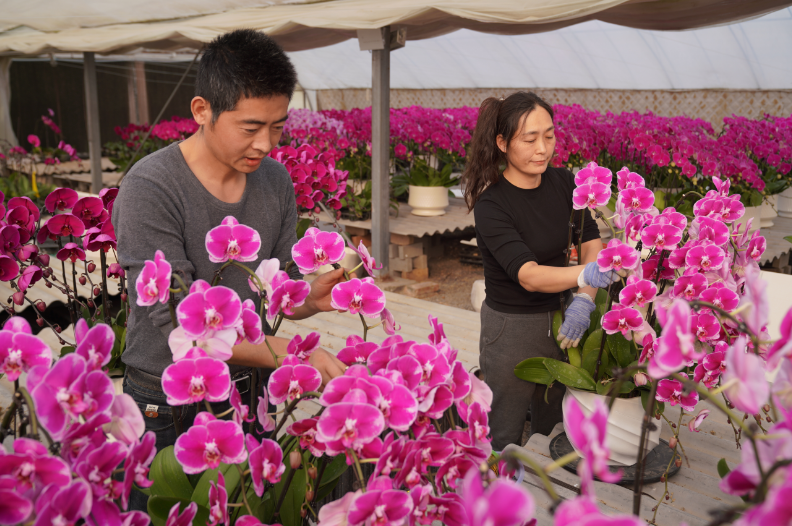 产业发展也带动了当地村民就业。工人杨娟是卷子村村民,在何小辉的花卉种植基地主要负责挑花、组盆。“组一盆6元,我一天能组20多盆。”杨娟一边熟练地将不同颜色的蝴蝶兰搭配组盆,一边笑着说,“在这里干活,离家近,收入也不错,还能照顾老人和孩子,比外出打工强多了。”