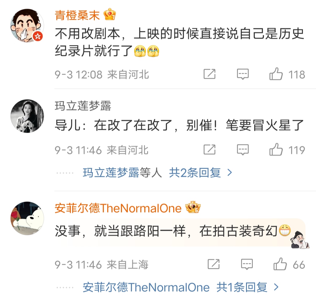 “不用改剧本,上映的时候直接说自己是历史纪录片就行了。”
