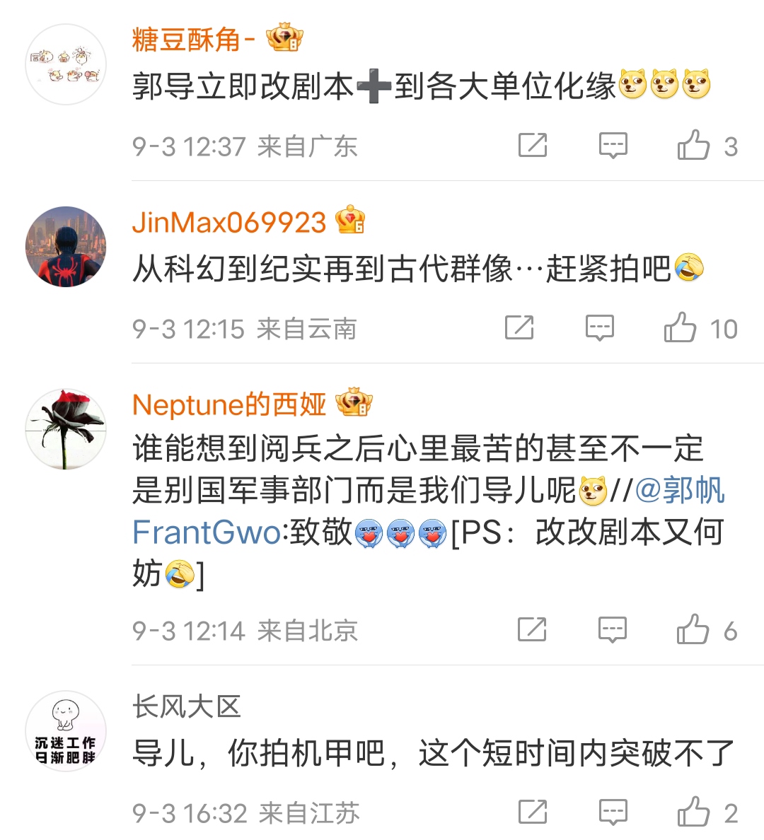 压力给到了郭帆,评论区的网友乐开了花,有网友还建议郭帆暂时先不要改剧本,央视的空间站太空电影纪录片马上要上映了,剧本改早了到时候可能又要改。话不多说,一起来看看快让人笑不活的评论区留言吧。