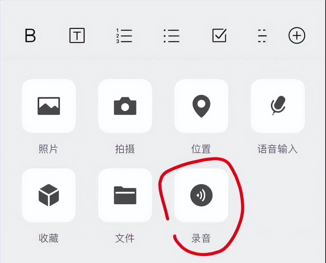 接着,在笔记编辑栏的底部工具栏中找到“录音”功能,即可开始录音。