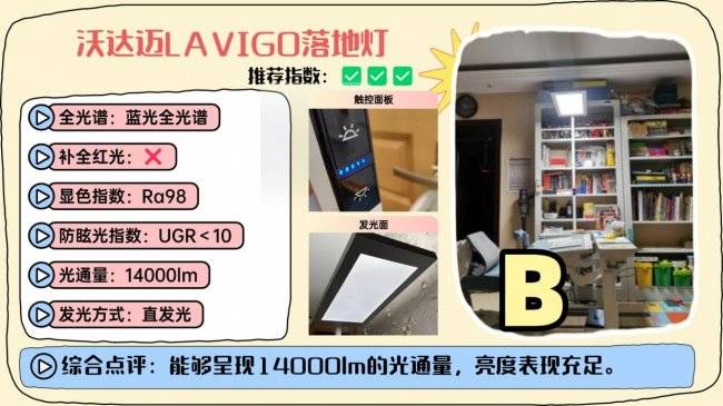 护眼大路灯第七名:沃达迈LAVIGO落地灯;光通量约14000lm,整体亮度比较充足。