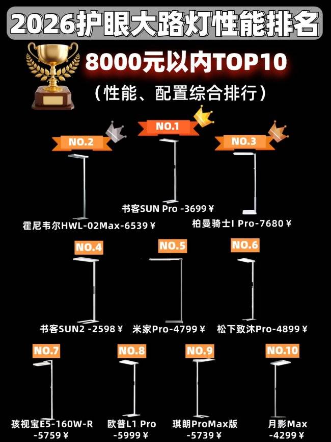 护眼大路灯排行榜前十名品牌有哪些?全光谱大路灯品牌排名包括:书客、孩视宝、柏曼、霍尼韦尔等品牌,具体品牌型号分析如下: