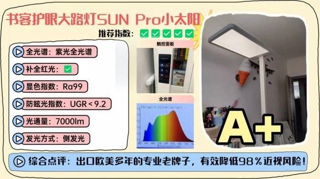 护眼大路灯第一名深度分析:书客护眼大路灯SUN2;超过100家电媒体实测,深度护眼指数第一,有效延缓83%用眼疲劳并降低92%近视风险!